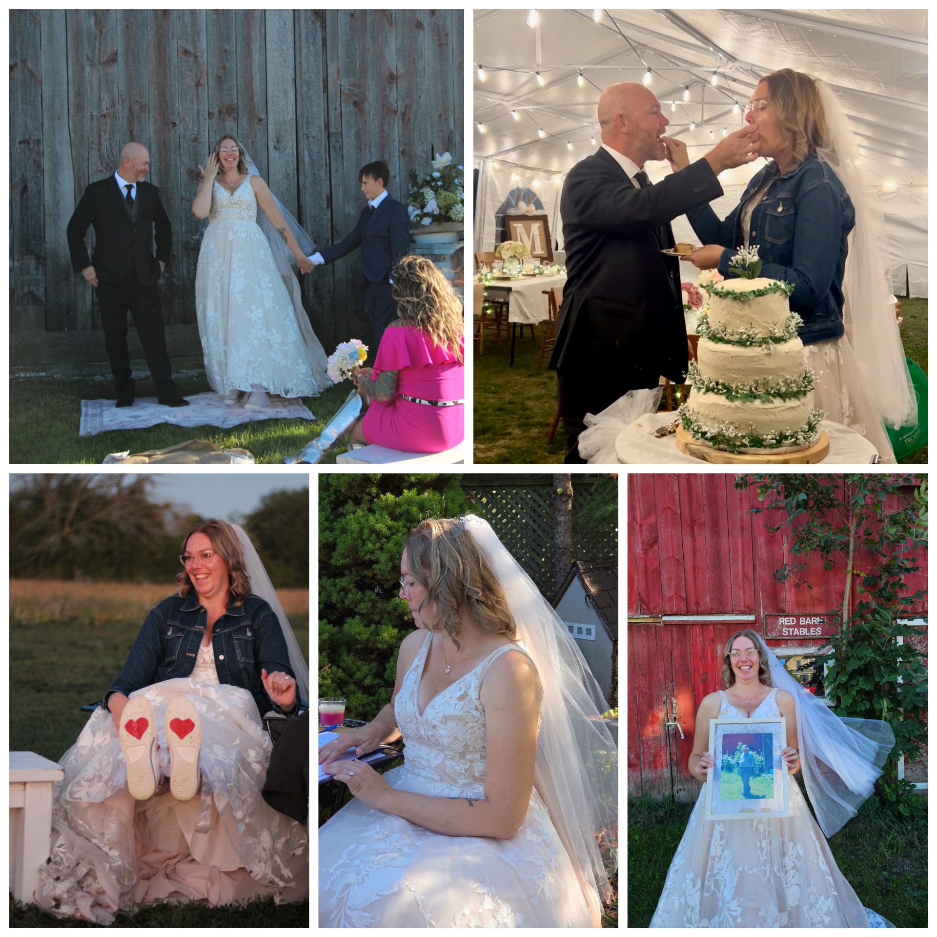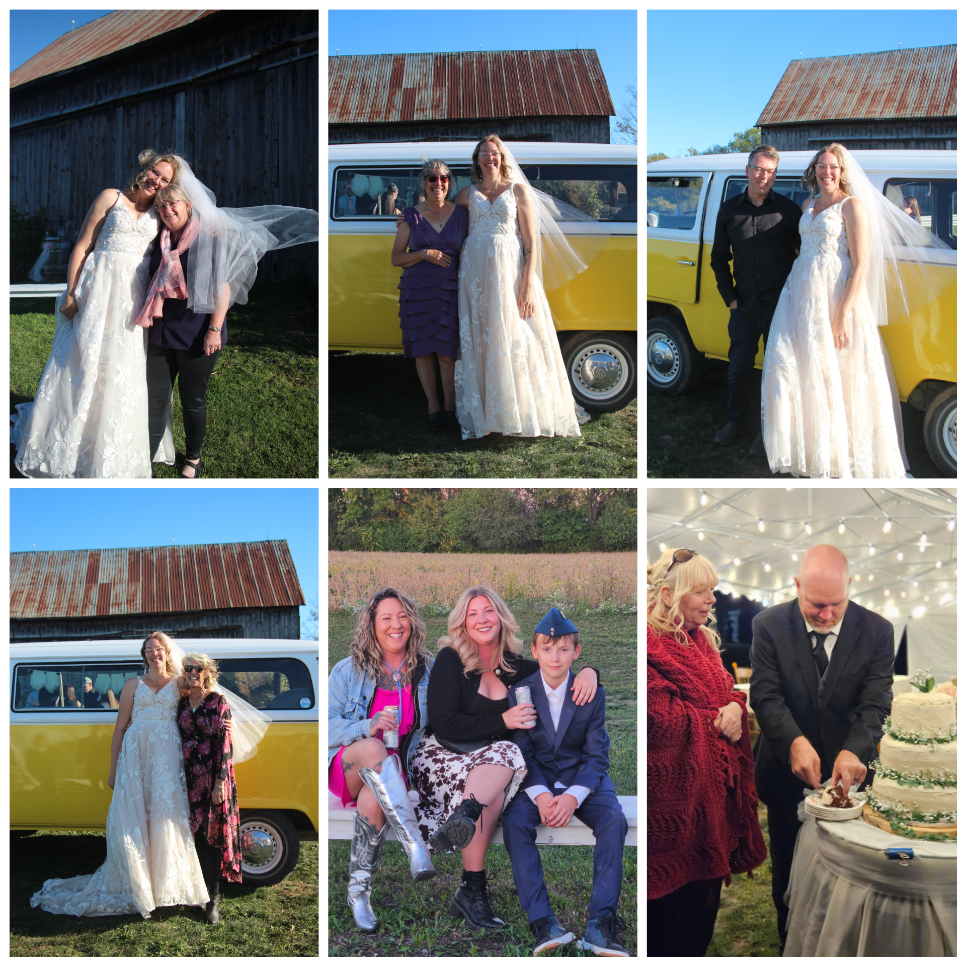 Thank-you to everyone who helped make our dreams come true with the best day ever. Thank-you to my mom for all the dress alterations and the amazing decor set up and take down. Mom, you honestly should be in the wedding business. Thank-you to my mother-in-law for marrying us and making the most beautiful and delicious cake, with each of us getting to pick our own flavour layer, it was perfect. Thank-you to my brother Jesse for capturing gorgeous pictures and admitting that even he loved the wedding. Thank-you to my stepsisters Sarah and Shelly for the bachelorette party of my dreams, for coming to the hotel and helping me get ready the hair was perfect, for all the pictures, the rides, also for all the years we didn’t have to be sisters but we chose to stay together, I love you girls! Thank-you Auntie Kirsten, for helping me into the dress and not melting down when it wasn’t done up right, for help setting up, taking down and recommending the whiskey sour. Thank-you Gran, for being my biggest role model when it comes to love, for allowing me to live out my kid dream and be married on the farm, for always knowing an officiant and a witness or two, for holding the Opa picture and always knowing what to say. Thank you to my son who held my hand all day. When I cried that I didn’t have my dad or my Opa to walk me down the aisle, without a moments hesitation he said, mom you got me. He looked so grown up in his navy blue suit walking me down the aisle not to give me away but to join in becoming a Mitchell, it was perfect.