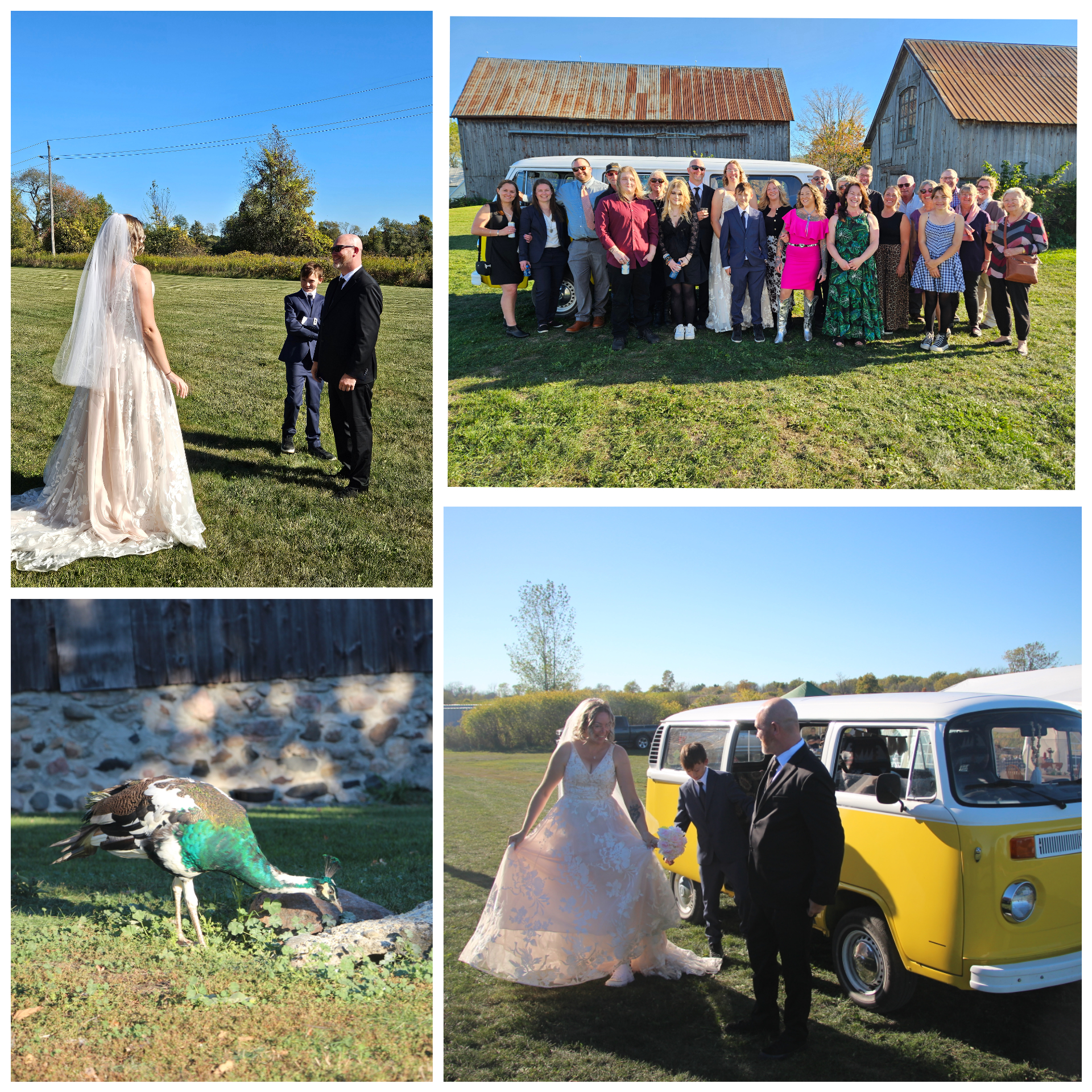 We left the farm in a bright yellow VW bus, thank-you Westy Wine Tours. We made the short drive around the block, but all three of us my son included, can agree that was one cool bus. We arrived to twenty-two of our favourite people. We were married by my mother- in-law in the cutest ceremony filled with loving words and hugs. We were married in front of their red barn, and yes, the farm does have a peacock. I was terrified to read my vows. I love to write, but I have never been a fan of reading out loud. When I sat down to write my vows, I knew I had to include my grandparents they are the reason I believe in love. I had to read those pages several times in order to stop crying, but I felt like I tied in what it was like growing up watching, waiting, dreaming and finally getting to experience it for myself. I have never been loved the way my husband loves me.